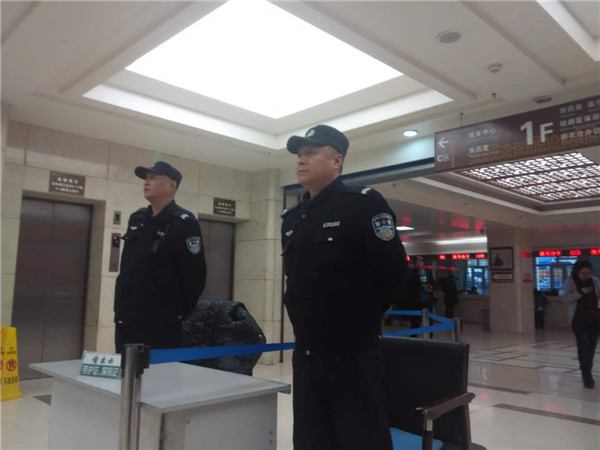 2017年10月15日公司派遣保安員承擔(dān)牡丹江心血管病醫(yī)院安檢工作